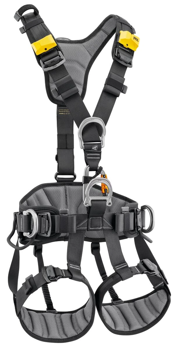 The AVAO harness is specifically designed for workers at height. Its design is specific to work positioning and rope descent. Contoured foam on the semi-rigid waistbelt and leg loops provide comfort during use. The waistbelt features metal side attachment points, equipment loops, and tool holder slots, allowing the user to organize all the necessary equipment for a day of work. Adjustment is quick and easy with self-locking DOUBLEBACK buckles.