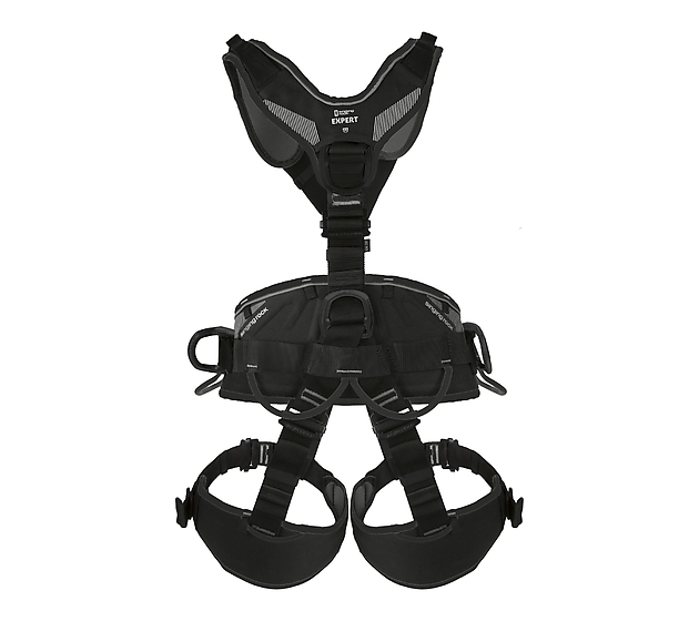 Fully adjustable harness for rope access with a padded wide waist belt, leg loops and shoulder straps. Suitable also for work positioning, fall arrest and work restraint situations. The variant of the EXPERT 3D harness with easy-lock buckles.